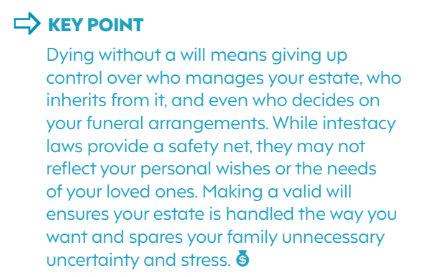 When someone passes away without a valid will, this is known as intestacy. In this situation, the law in each state and territory sets out a formula for how your estate is divided. These rules often follow a standard order – spouse first, then children, then other relatives, but they may not align with what you would have wanted.